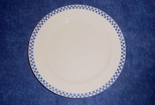 6 dessert plates, with small blue checks.