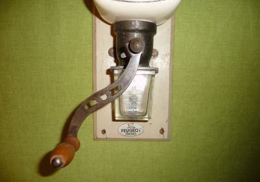 It turns, works, but I did not try to grind coffee. The metal lid is new.