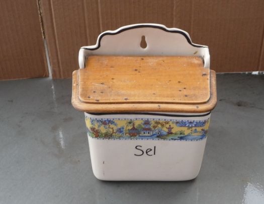 Nice salt box in earthenware, asiatic pattern, also on the sides of the box.