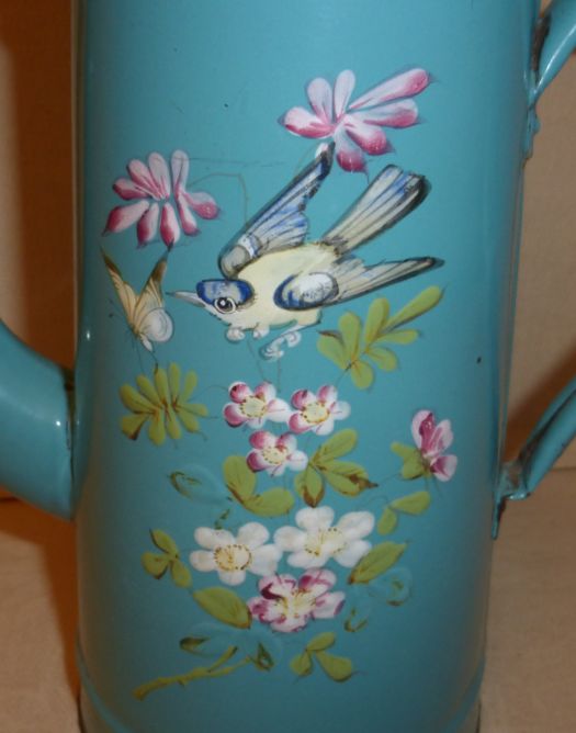 Good condition, not many chips, very black inside because of coffee. Height 29 cm.