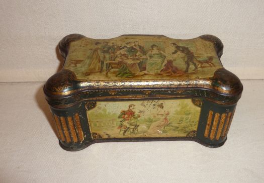 Nice lithographed tin box, with an uncommon shape, advertising for "Biscuits Pernod" (visible on fourth picture).