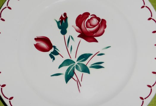 6 flat plates from Badonviller's manufacture, with a beautiful red rose !