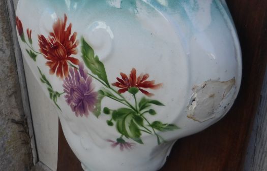 Great enameled french lavabo, with nice flowers and a charming shape.